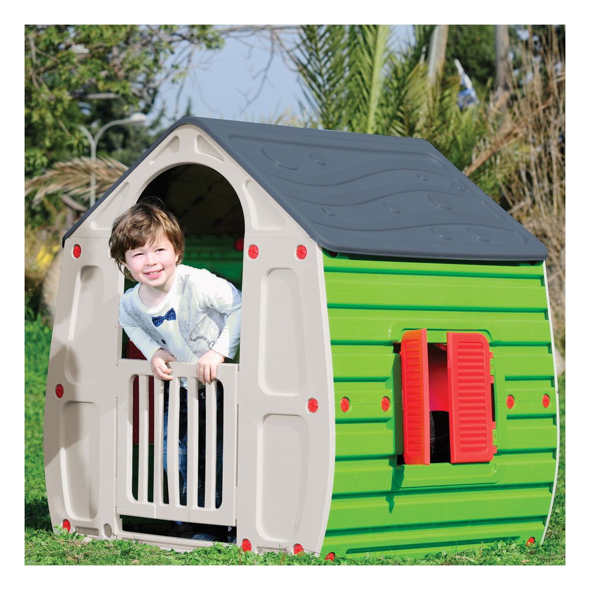 Plastový domček MAGICAL je ideálny doplnok na vašu záhradu. Deti si ho zamilujú a budú v ňom tráviť každú chvíľku, keď budú vonku. Domček má ochranu proti UV žiareniu, ktorá zabezpečuje dlhú trvanlivosť farieb