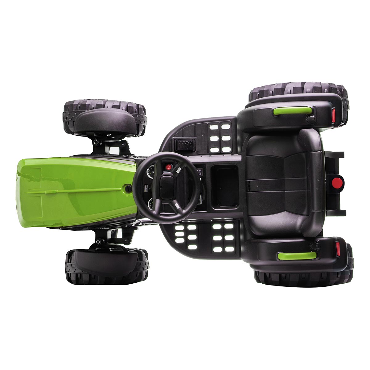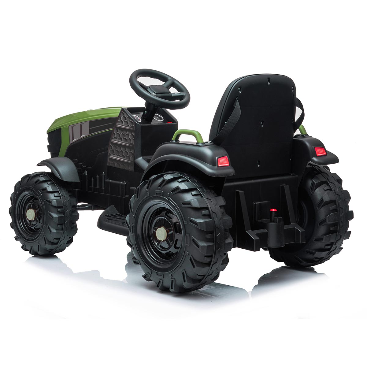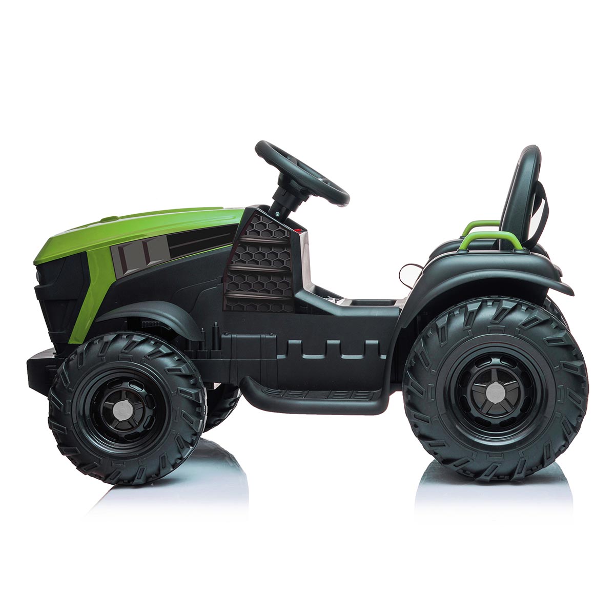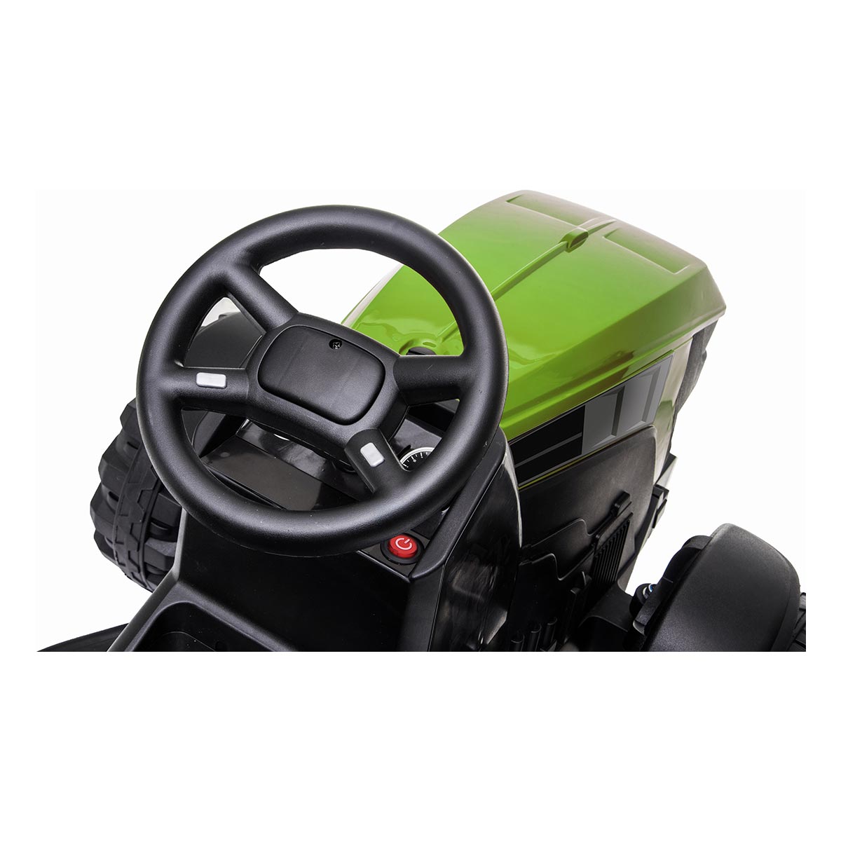 Chceš byť malým farmárom alebo farmárkou? Predstavujeme ti nový elektrický traktor, s ktorým si užiješ množstvo zábavy. Vezmi si kľúče, sadni za volant a naštartuj, počuješ zvuk motora? Pripútaj sa pásom, zošliapni plyn a hurá na výlet. Ako v skutočnom traktore, aj tu si môžeš pustiť muziku a pokiaľ ťa omrzí, môžeš pripojiť MP3 prehrávač alebo telefón so svojimi obľúbenými pesničkami. Keď ti bude niekto prekážať v ceste, zatrúb alebo zablikaj. Ak chceš niekam zájsť, ale nechce sa ti šoférovať, daj rodičom ovládač do ruky a nechaj sa voziť.
