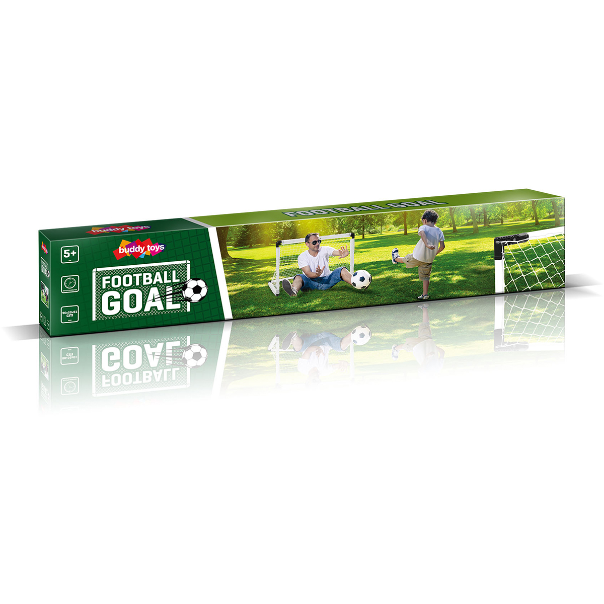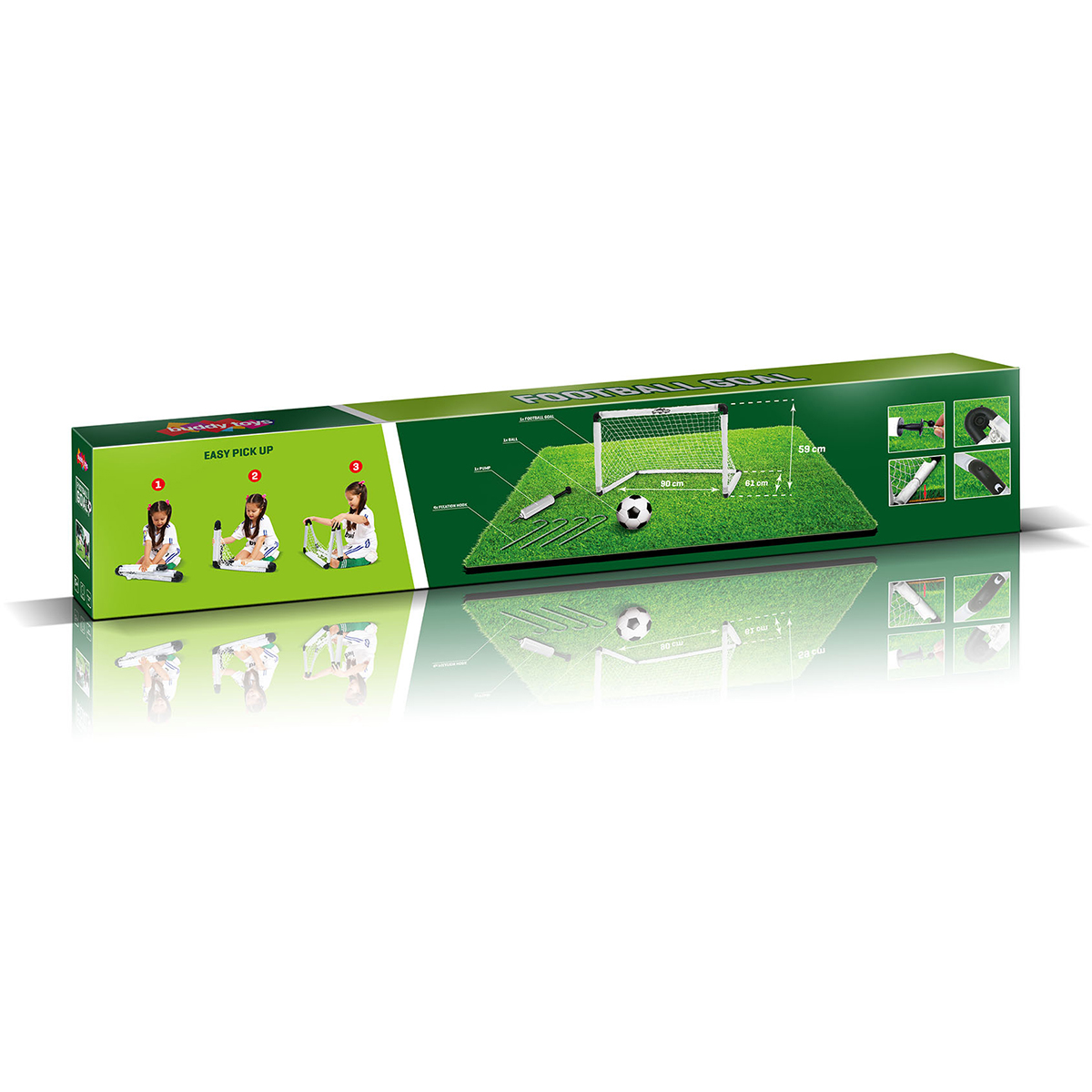Balenie obsahuje futbalovú bránku, malú nafukovaciu loptu, pumpičku a ukotvenie do trávy.