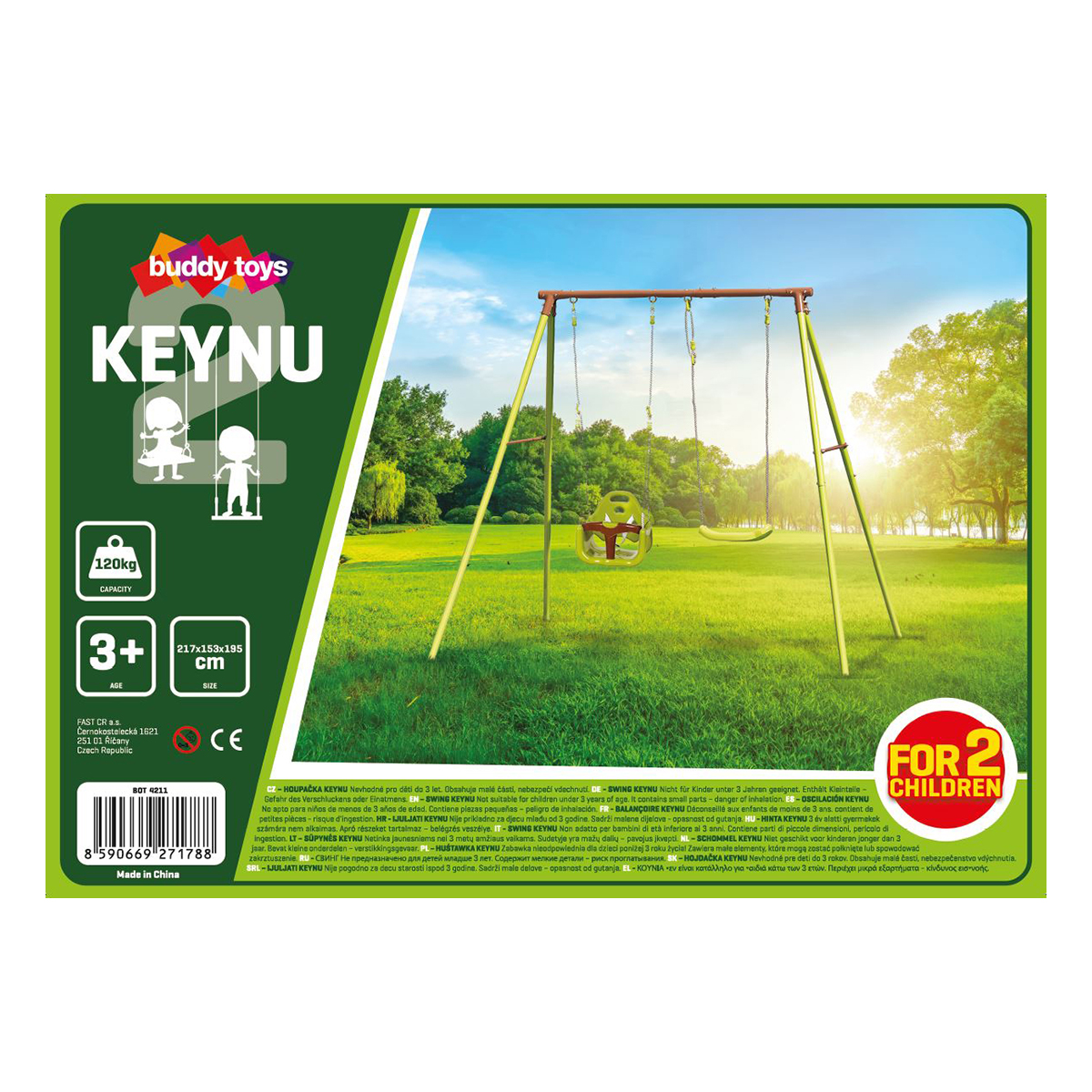 Masívna hojdačka s kompletnou kovovou konštrukciou je zárukou dlhodobej životnosťou s minimálnou údržbou. Nosnosť hojdačky je až 100 kg. Hojdacie prvky sú uchytené bezpečnostnými karabínami, pre jednoduchšiu a rýchlejšiu výmenu.