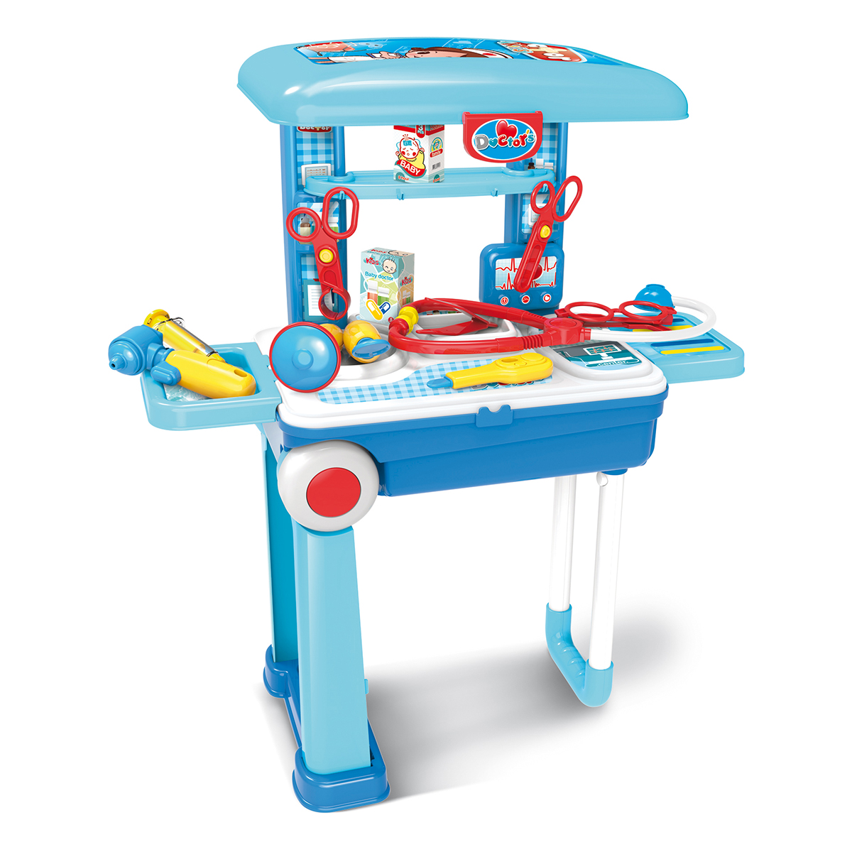 Ideálna hračka, ktorá podporuje detskú "profesijnú" hravosť je Doktor v kufríku vybavená stojanom aj kolieskami s 13 kusmi rozmanitého príslušenstva. Všetko je vyrobené z kvalitného a odolného plastu. Lekárska ordinácia s rozmermi 63 x 53 x 25 cm je ľahko zostaviteľná, možno ju jednoducho rozložiť a upratať do kufríka, je teda veľmi vhodná aj pri cestách, dovoleniek a výletoch.