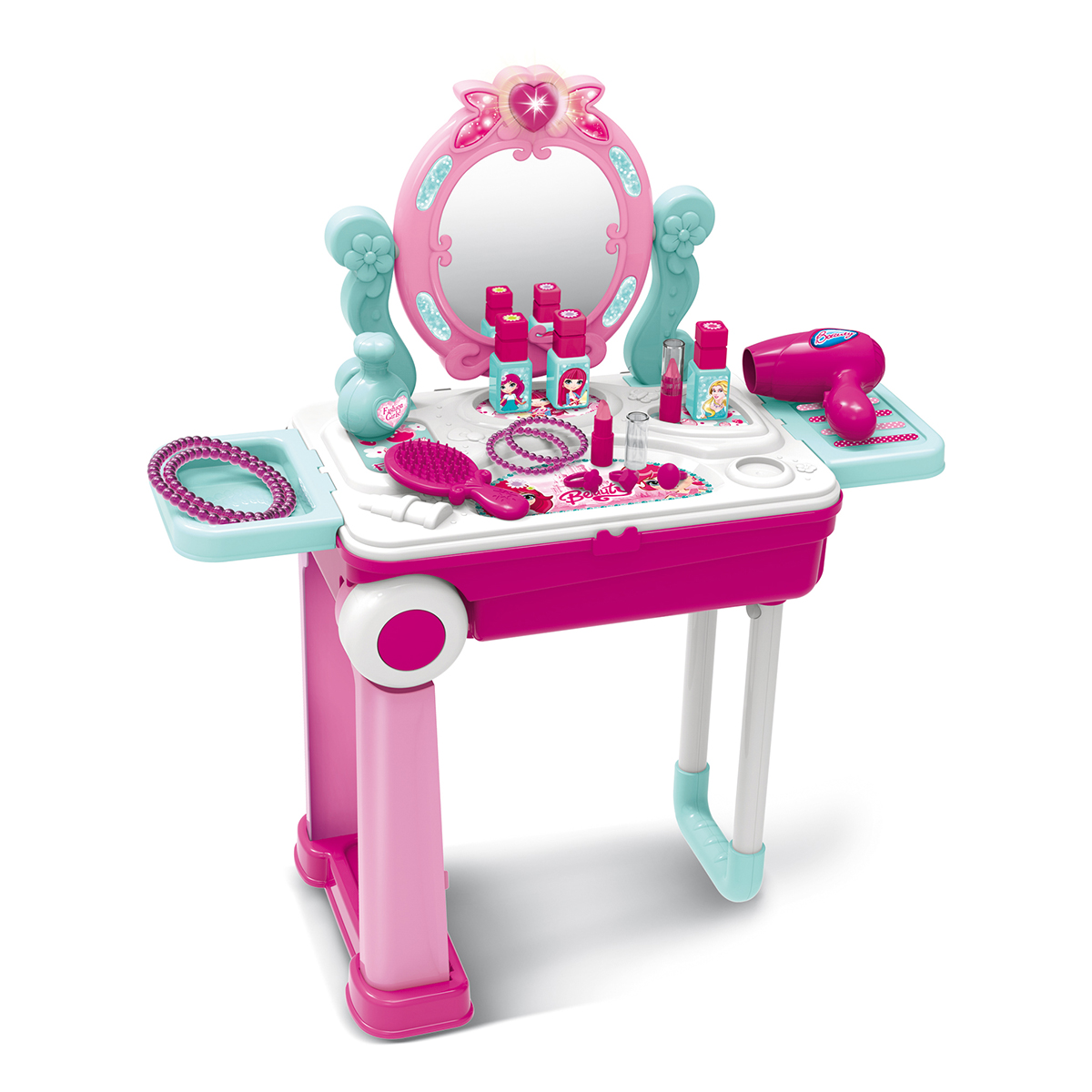 Ideálna hračka, ktorá podporuje detskú "profesijnú" hravosť je Salón v kufríku vybavená stojanom aj kolieskami so 14 kusmi rozmanitého príslušenstva. Všetko je vyrobené z kvalitného a odolného plastu. Salón s rozmermi 63 x 53 x 25 cm je ľahko zostaviteľná, možno ju jednoducho rozložiť a upratať do kufríka, je teda veľmi vhodná aj pri cestách, dovoleniek a výletoch.