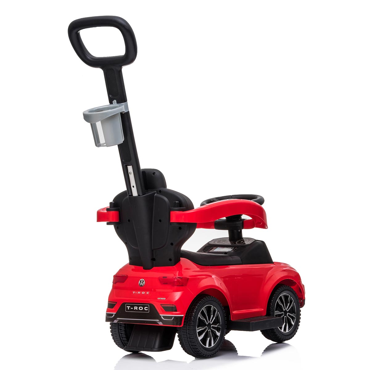 Chcete, aby malo vaše dieťa jedinečné odrážadlo, za ktorým sa budú ostatné deti a rodičia otáčať? Potom mu kúpte luxusné odrážalo VW T-ROC 3v1 s vodiacou tyčou a držiakom na pitie. Ide o zmenšenú kópiu naozajstného športového auta. Dieťa ocení dostatočne veľký úložný priestor pod sedadlom, kam si môže dať svoje obľúbené hračky. Iste sa mu zapáčia aj zvuky a melódie na volante. Rodičia určite ocenia sklopnú chrbtovú opierku a vodiacu tyč pre väčší komfort a bezpečnosť.
